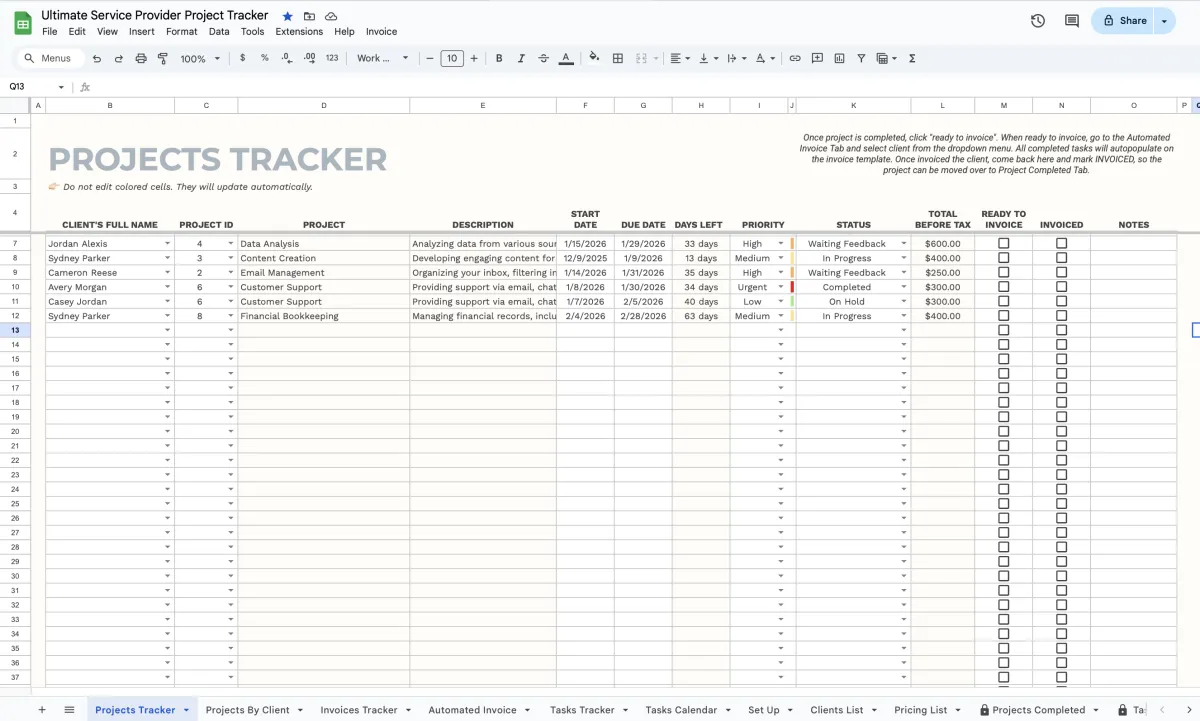 A plug-and-play Google Sheets system designed to help you manage clients, projects, and operations — without overwhelm.